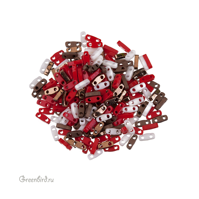 Японский бисер Quarter TILA от MIYUKI (стекло). Цвет: #MIX205 (микс Chocolate covered cherries, непрозрачный, красный, белый, бронзовый, коричневый матовый). Размер: 5 х 1,2 х 1,9 мм, два отверстия 0,8 мм. Цена указана за 5 грамм (примерно 240 шт).
