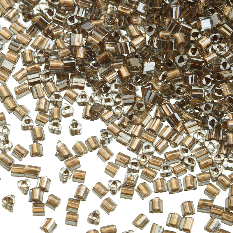Японский бисер TOHO — треугольный (TOHO triangles), размер 11/0. Отверстие 0,85 мм. Цвет #993 (Gold-Lined Black Diamond, внутренняя позолота, черный бриллиант). Цена указана за 10 грамм (примерно 700 шт).