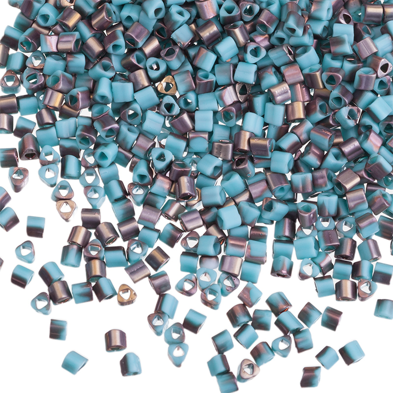 Японский бисер TOHO — треугольный (TOHO triangles), размер 11/0. Отверстие 0,85 мм. Цвет #Y857F (HYBRID Apollo - Frosted Turquoise, матовый hybrid Аполло, бирюзовый). Цена указана за 10 грамм (примерно 700 шт).