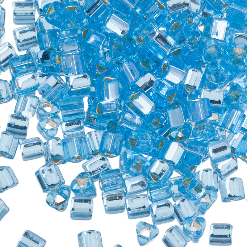 Японский бисер TOHO — треугольный (TOHO triangles), размер 8/0 (высота 3 мм). Отверстие 1 мм. Цвет #123 (Silver-Lined Aquamarine, внутреннее серебрение, аквамарин). Цена указана за 10 грамм (примерно 250 шт).