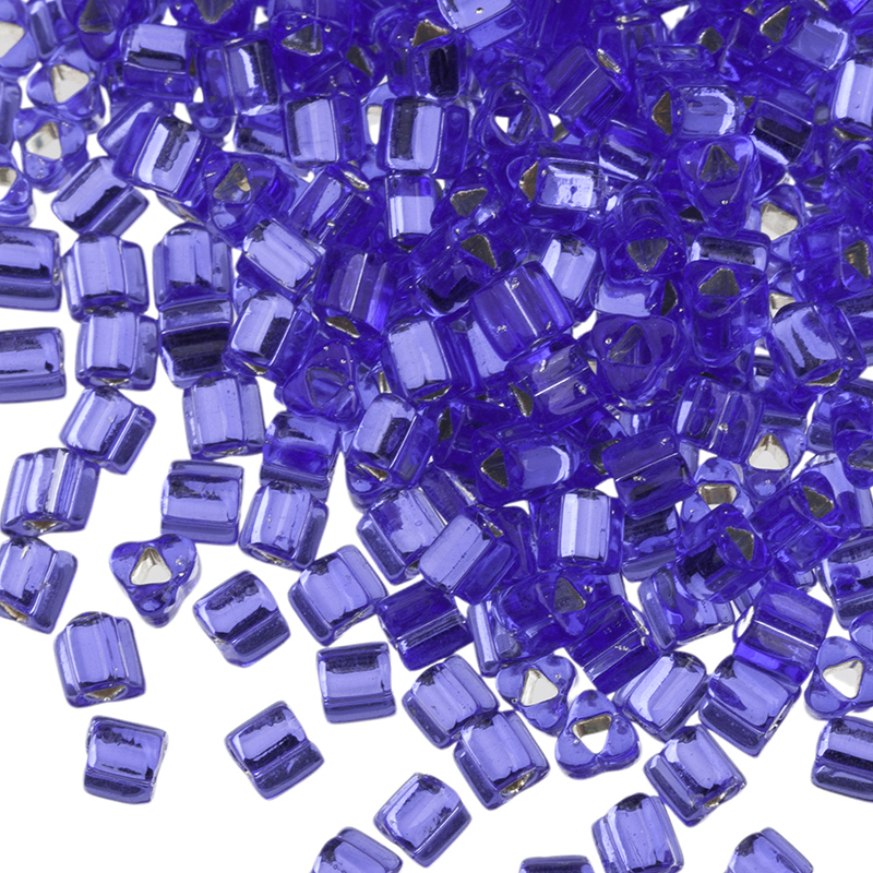 Японский бисер TOHO — треугольный (TOHO triangles), размер 8/0 (высота 3 мм). Отверстие 1 мм. Цвет #35 (Silver-Lined Sapphire, внутреннее серебрение, сапфир). Цена указана за 10 грамм (примерно 250 шт).