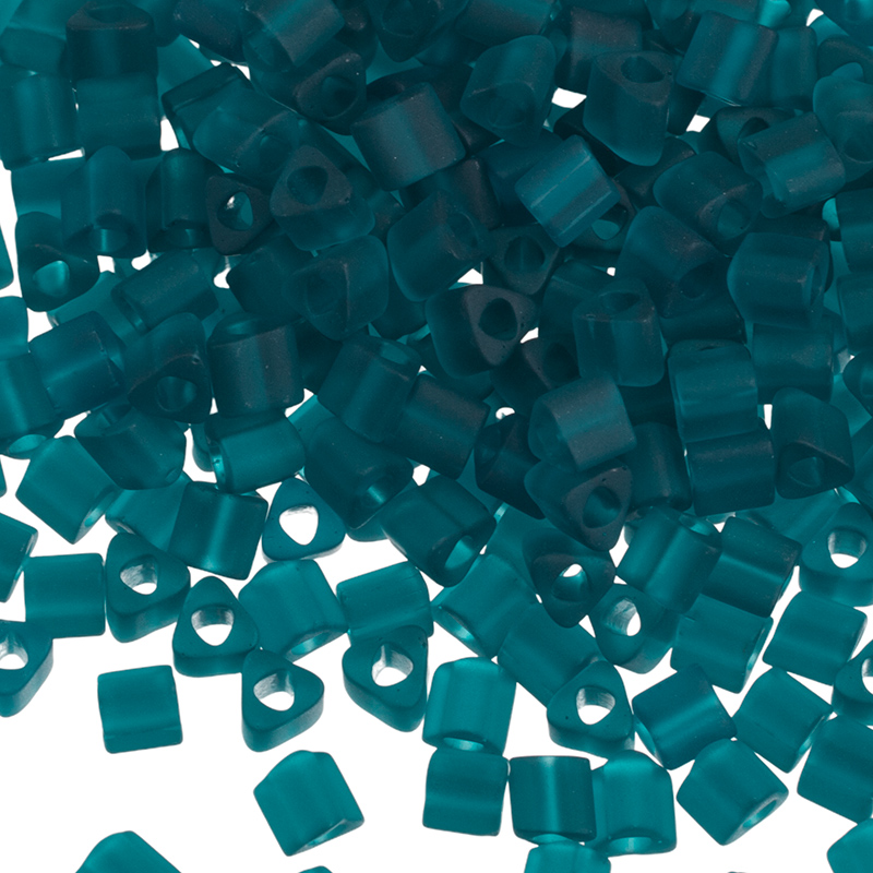 Японский бисер TOHO — треугольный (TOHO triangles), размер 8/0 , высота 3 мм. Отверстие 1 мм. Цвет #7BDF (Transparent Frosted Teal, прозрачный матовый, сине-зеленый). Цена указана за 10 грамм (примерно 250 шт).