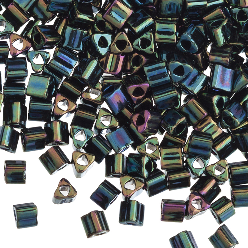 Японский бисер TOHO — треугольный (TOHO triangles), размер 8/0 (высота 3 мм). Отверстие 1 мм. Цвет #84 (Metallic Iris - Green/Brown, металлизированный, коричнево-зеленый). Цена указана за 10 грамм (примерно 250 шт).