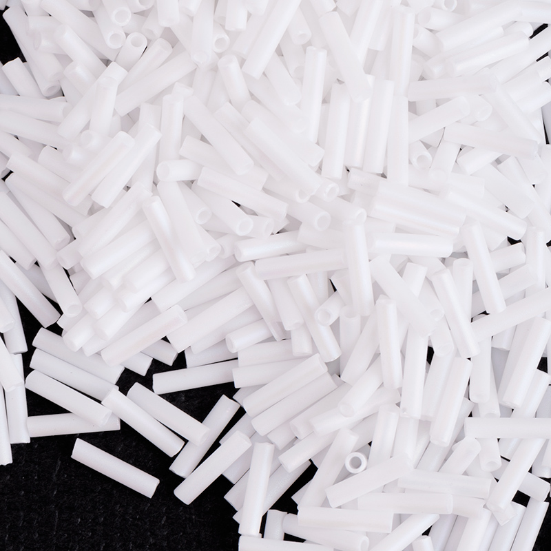 Японский бисер MIYUKI Slender Bugle — стеклярус классической формы тонкий (стекло). Цвет: #402FR (непрозрачный белый), эффект: Matte AB (матовый с легким радужным переливом). Длина: 6 мм, диаметр: 1,3 мм, отверстие: 0,7 мм. Цена указана за 10 грамм (примерно 720 шт).