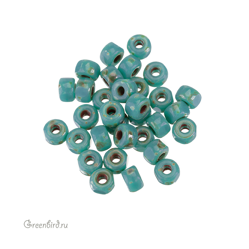 Бисер Matubo 3 Cut (стекло). Цвет: #63130-86805 (бирюза с серо-коричневыми включениями). Размер: 6,1 x 3,9 мм, отверстие: 2,1 мм. Производство: Чехия. Цена указана за 10 грамм (примерно 50 штук).