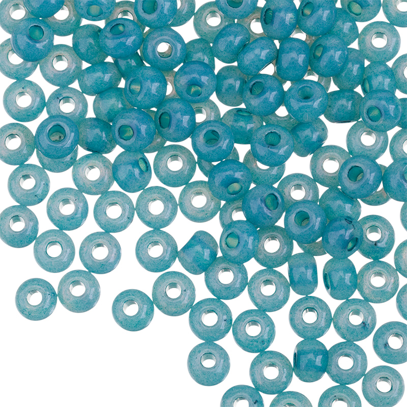 Чешский круглый бисер Preciosa Czech 6/0 (стекло). Цвет: #02633 (Solgel African Opal, полупрозрачный, голубой). Покрытие бисера нестойкое. Размер: 4,1 мм, отверстие: 1,1 мм. Производство: Чехия. Цена указана за 10 грамм.