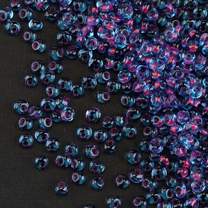 Японский бисер фирмы TOHO — магатамы (TOHO Magatama), размер 2,3 х 3,4 мм, отверстие 1 мм. Цвет #252 (Inside-Color Aqua/Purple-Lined, окрашенный изнутри, морская вода/фиолетовый). Цена указана за 10 грамм (примерно 330 шт).