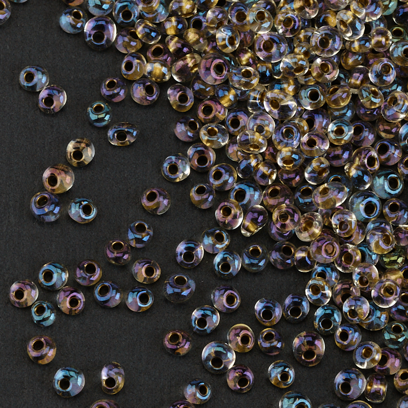 Японский бисер фирмы TOHO — магатамы (TOHO Magatama), размер 2,3 х 3,4 мм, отверстие 1 мм. Цвет #262 (Окрашенный изнутри, хрусталь/золото). Цена указана за 10 грамм (примерно 350 шт).
