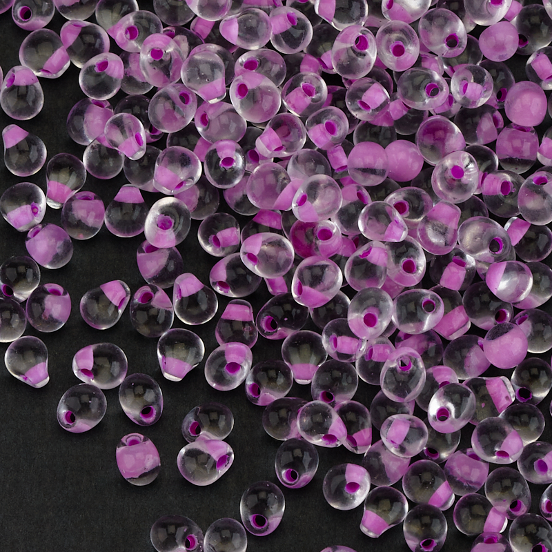 Японский бисер MIYUKI Drop, форма: каплевидная, цвет #F-25 (прозрачный, внутреннее окрашивание, розовый). Размер 3,2 х 3,8 мм, отверстие 0,8 мм. Цена указана за 10 грамм (примерно 220 шт.)
