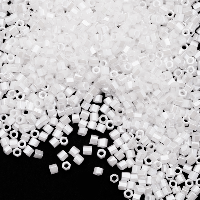 Японский шестиугольный бисер TOHO Hexagon, размер 15/0. Диаметр: 1,6 мм, отверстие: 0,8 мм. Цвет: Lustered White #121 (непрозрачный глянцевый, белый). Производство: Япония. Цена указана за 1 упаковку (примерно 4,5 г).
