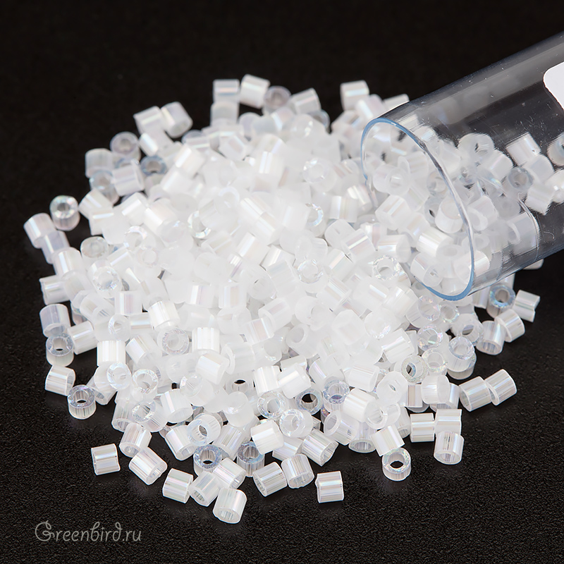 Японский цилиндрический бисер MIYUKI Delica, размер 10/0. Цвет: #0670 (шелковый сатин, хрусталь AB). Цена указана за 1 упаковку (примерно 4,5 гр).
