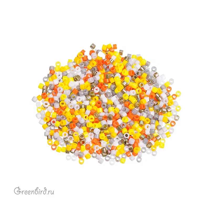 Японский цилиндрический бисер MIYUKI Delica, размер 11/0. Микс 085 (Serengeti). Цвета: желтый, оранжевый, белый, серый. Цена указана за 1 упаковку (примерно 4,5 г).