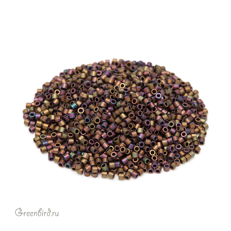 Японский цилиндрический бисер MIYUKI Delica, размер 15/0. Цвет: #1055 (матовый глянцевый радужный металлик, розово-зеленый). Цена указана за 1 упаковку (примерно 4,5 г).