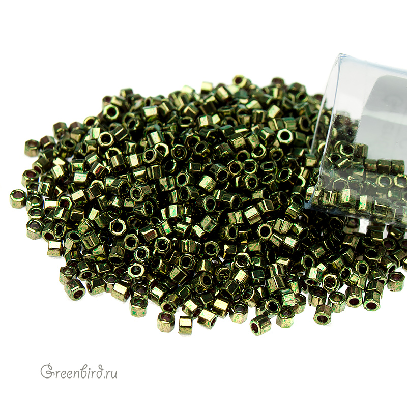 Японский бисер Delica Hexagon Cut (шестиугольный), размер 11/0. Цвет: #0011 (металлизированный, оливин). Цена указана за 1 упаковку (примерно 4,5 г).