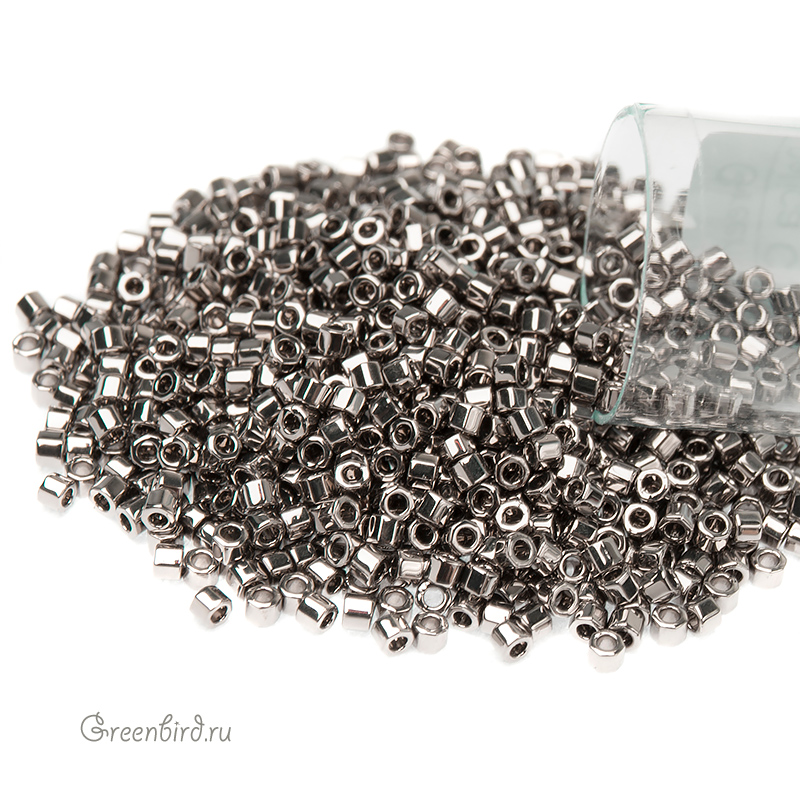Японский бисер Delica Hexagon Cut (шестиугольный), размер 11/0. Цвет: #0021 (металлизированный, сталь). Цена указана за 1 упаковку (примерно 4,5 г).