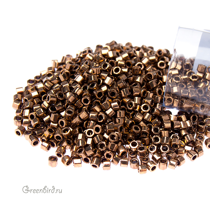 Японский бисер Delica Hexagon Cut (шестиугольный), размер 11/0. Цвет: #0022 (металлизированный, бронза). Цена указана за 1 упаковку (примерно 4,5 г).