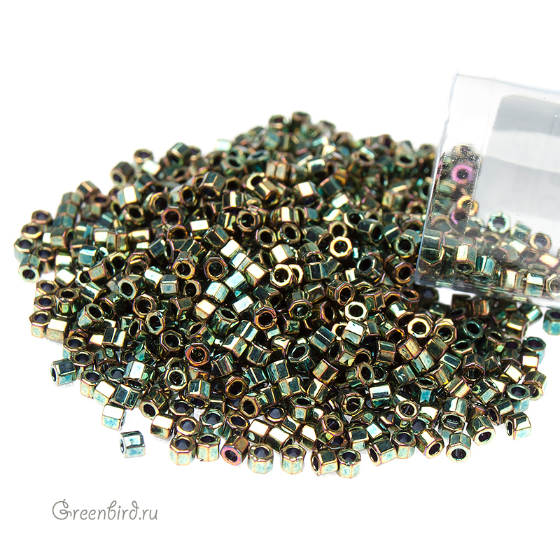 Японский бисер Delica Hexagon Cut (шестиугольный), размер 11/0. Цвет: #0024 (металлизированный, зеленый). Цена указана за 1 упаковку (примерно 4,5 г).
