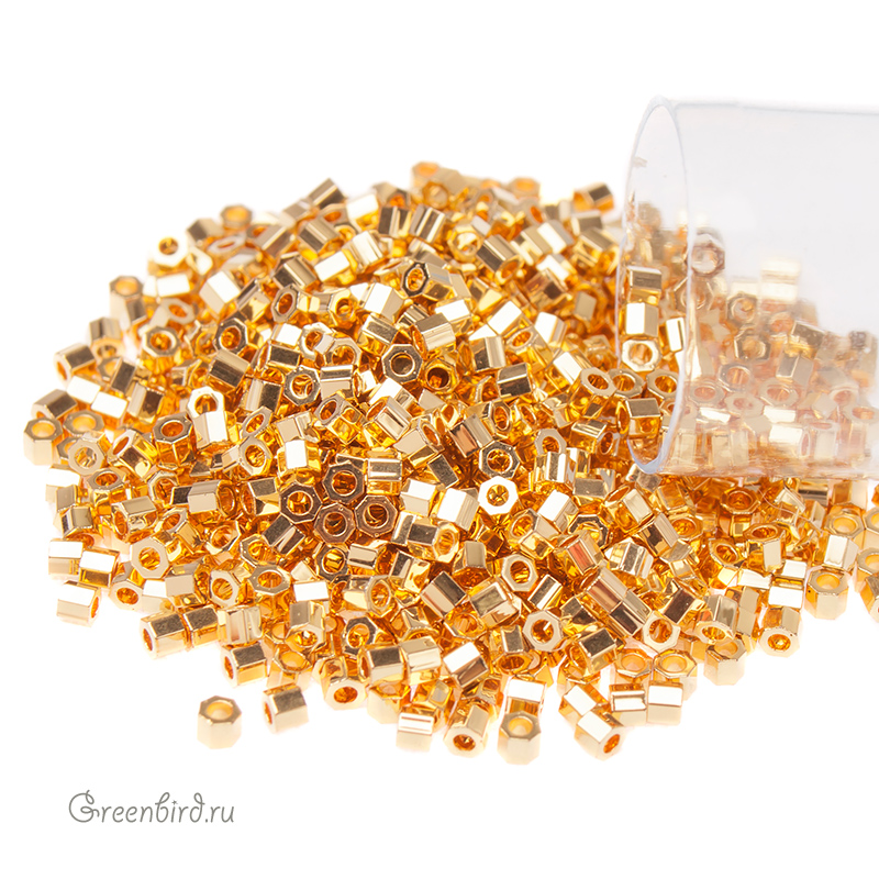 Японский бисер Delica Hexagon Cut (шестиугольный), размер 11/0. Цвет: #0031 (золото 24К снаружи). Цена указана за 1 упаковку (примерно 4,5 г).