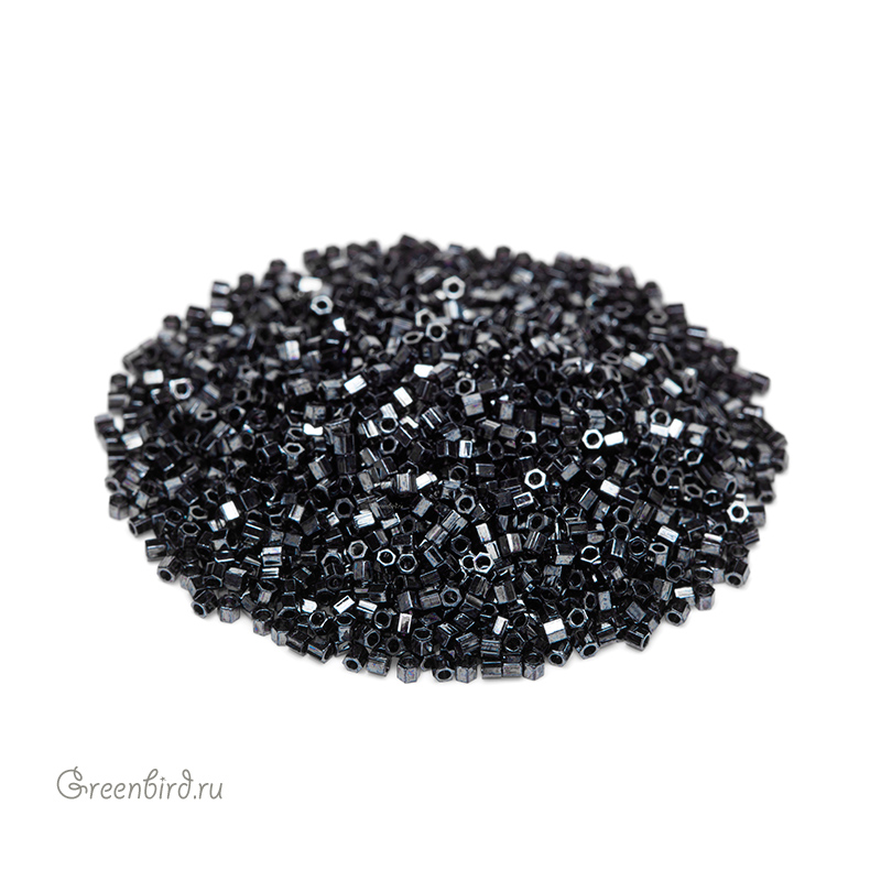 Японский бисер Delica Hexagon Cut (шестиугольный), размер 15/0. Цвет: #0001 (металлизированный, гематит). Цена указана за 1 упаковку (примерно 4,5 г).