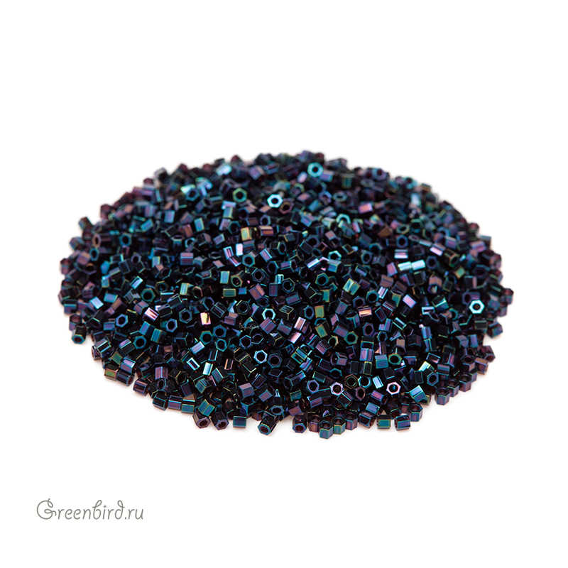 Японский бисер Delica Hexagon Cut (шестиугольный), размер 15/0. Цвет: #0002 (металлизированный, синий ирис). Цена указана за 1 упаковку (примерно 4,5 г).