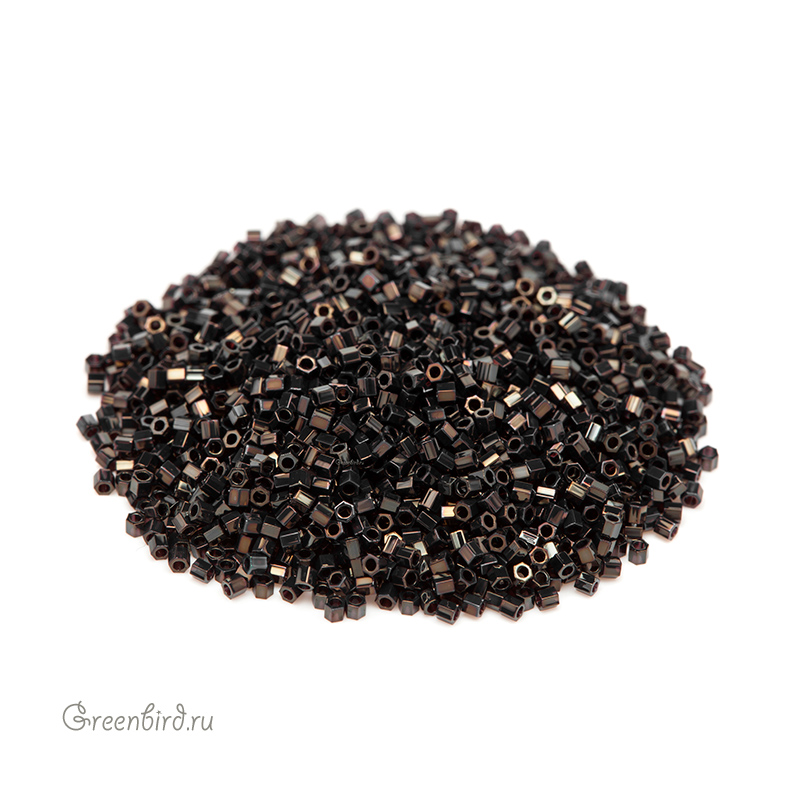 Японский бисер Delica Hexagon Cut (шестиугольный), размер 15/0. Цвет: #0007 (металлизированный, коричневый ирис). Цена указана за 1 упаковку (примерно 4,5 г).