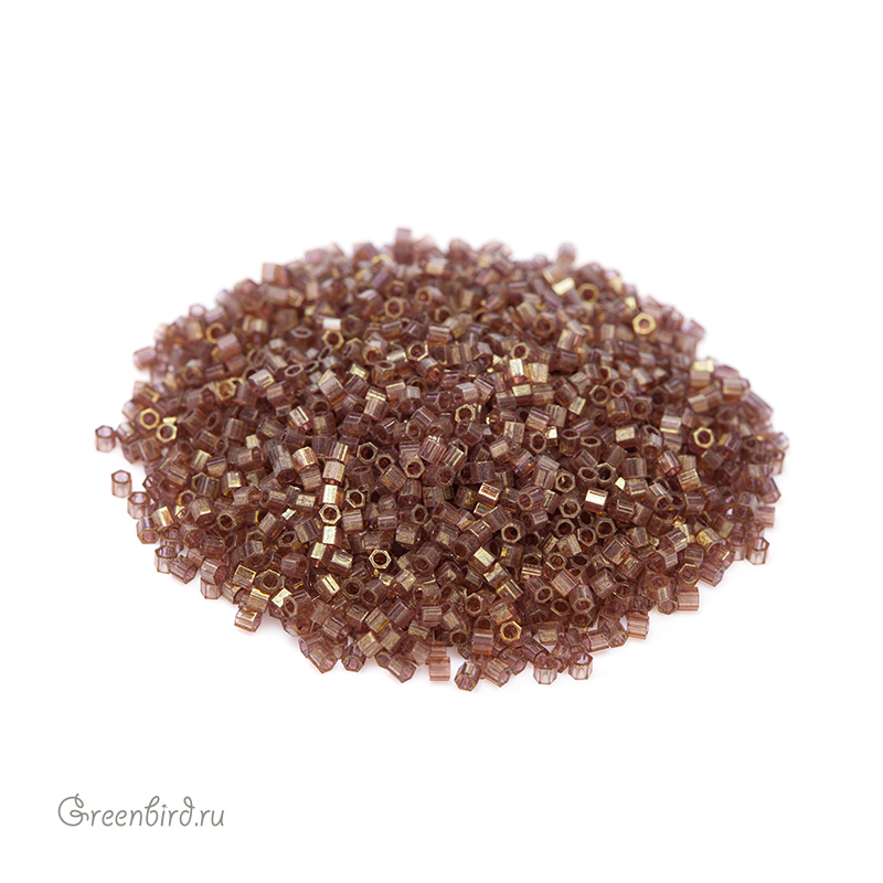 Японский бисер Delica Hexagon Cut (шестиугольный), размер 15/0. Цвет: #0115 (прозрачный глянцевый, розовый/золото). Цена указана за 1 упаковку (примерно 4,5 г).
