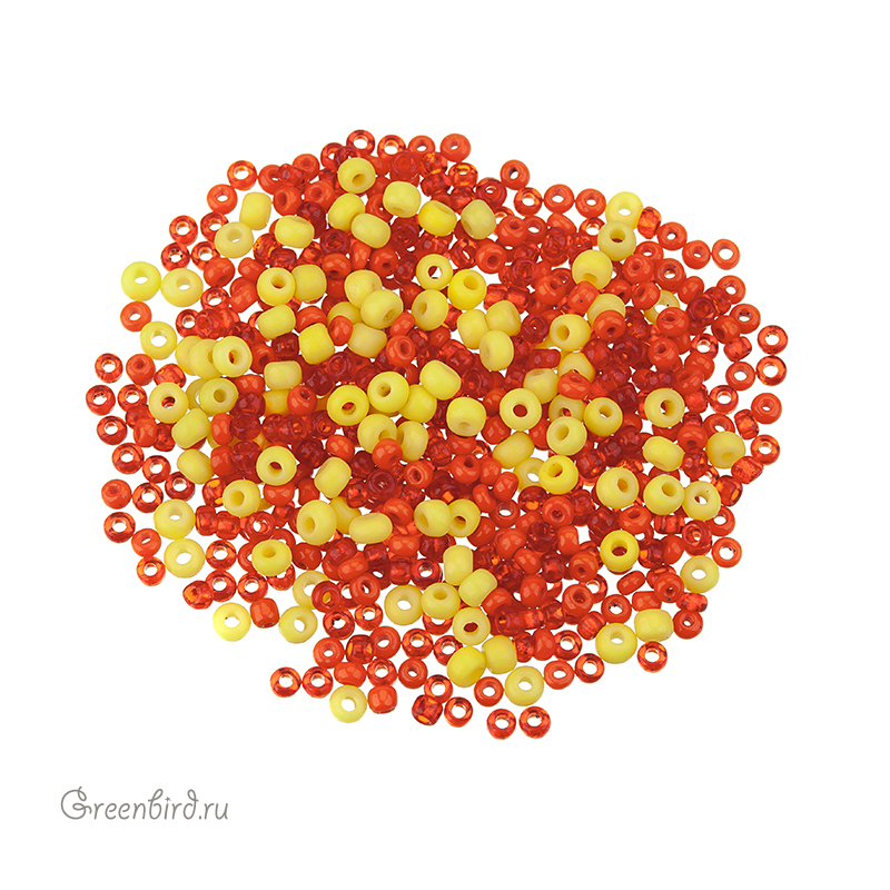 Венецианский винтажный бисер миксованный, смесь размеров. Цвет #Sunset (прозрачный красный; непрозрачный оранжевый, желтый). Производство: Италия. Цена указана за 5 грамм.
