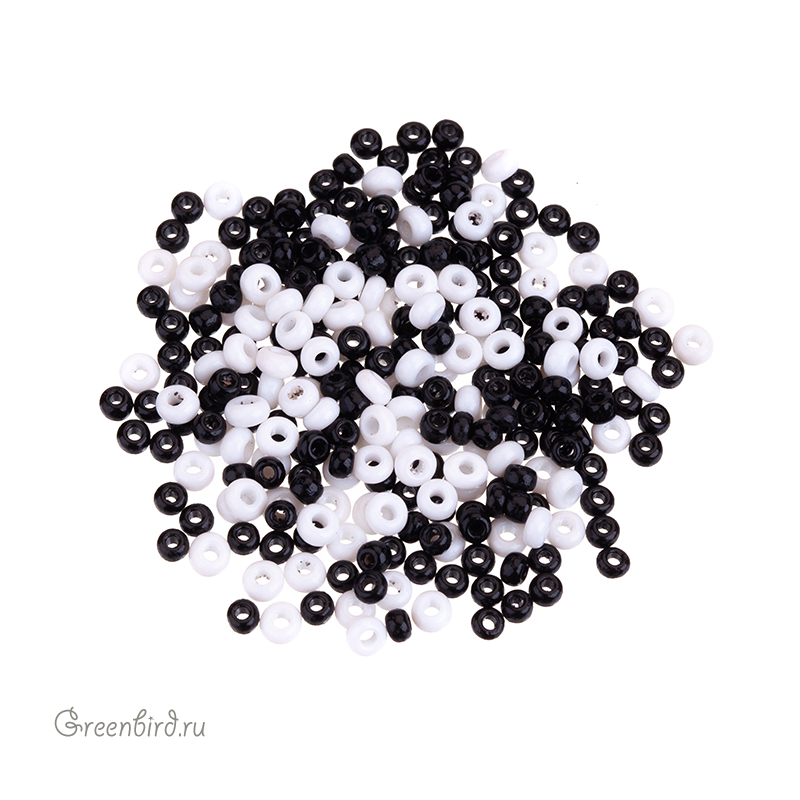 Венецианский винтажный бисер миксованный, смесь размеров. Цвет #Black/White (непрозрачный, черный и белый).