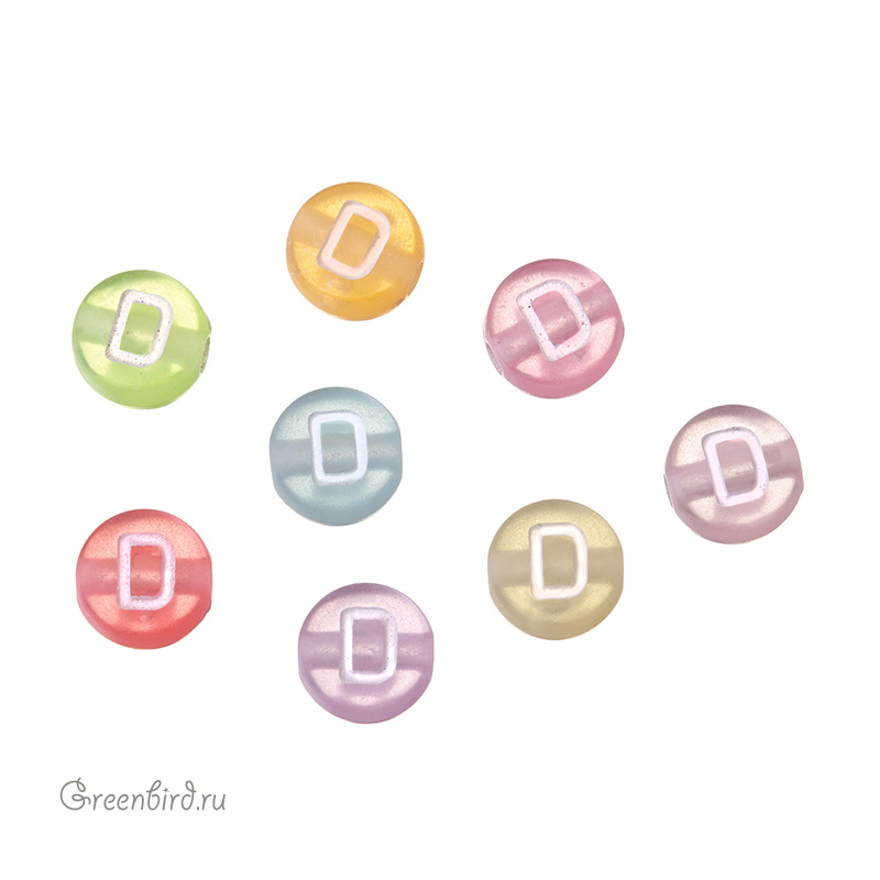 Бусины с буквами пластиковые. Цвет: в ассортименте; печать рисунка: белый. Размер: 6,7 х 7 мм, толщина: 4,1 мм, отверстие: 1,6 мм. Обратите внимание: это микс из разноцветных бусин. Вы получите бусину случайного цвета. Производство: Китай. Цена указана за 1 шт.