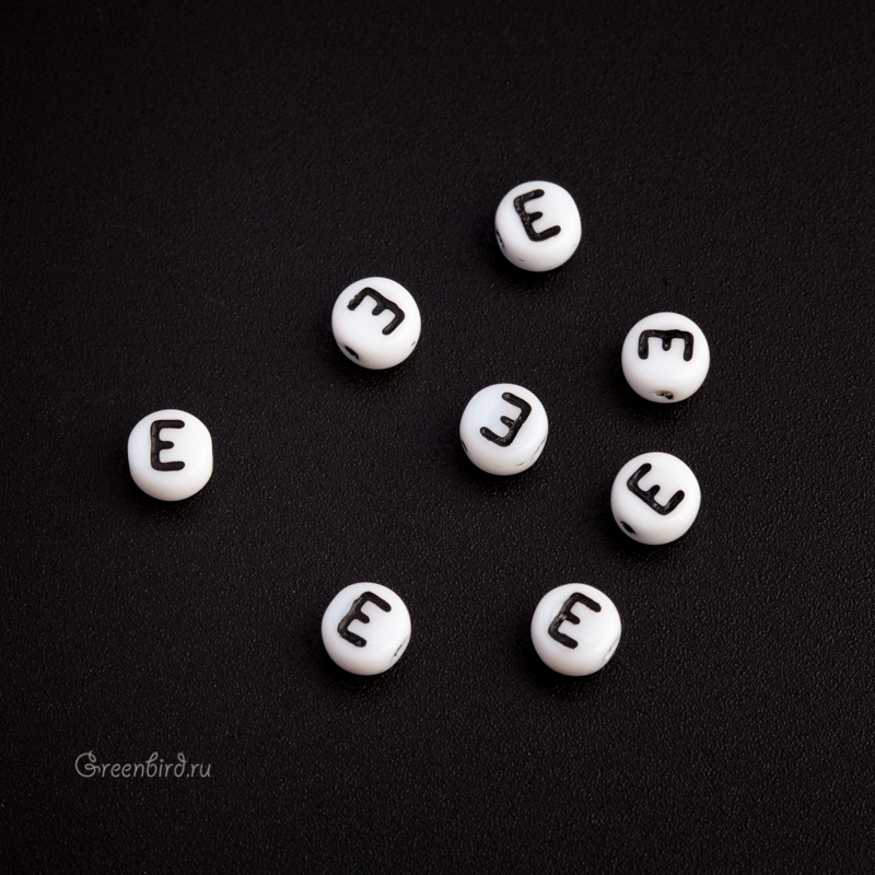 Бусины с буквами White Letter Beads (стекло). Цвет: белый, печать рисунка: черный. Размер: 6,2 х 6,6 мм, толщина: 4,3 мм, отверстие: 0,8-1 мм. Производство: Чехия. Цена указана за 1 шт.