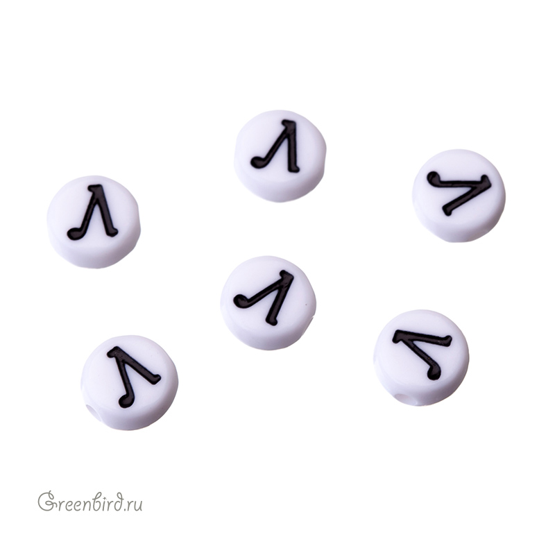 Бусины с буквами (кириллица) пластиковые. Цвет: белый; печать рисунка: черный. Размер: 6,8 х 7 мм, толщина: 3,5 мм, отверстие: 1,6 мм. Производство: Китай. Цена указана за 1 шт.