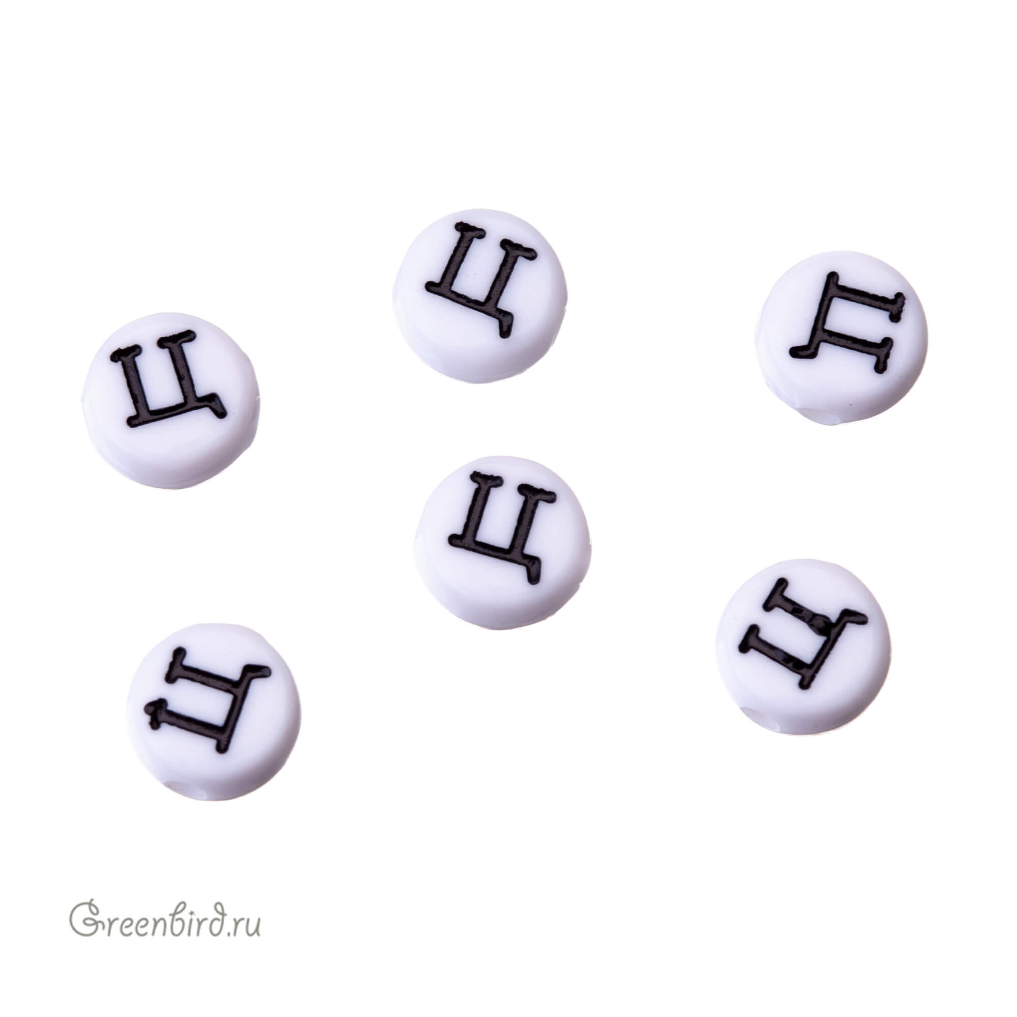 Бусины с буквами (кириллица) пластиковые. Цвет: белый; печать рисунка: черный. Размер: 6,8 х 7 мм, толщина: 3,5 мм, отверстие: 1,6 мм. Производство: Китай. Цена указана за 1 шт.