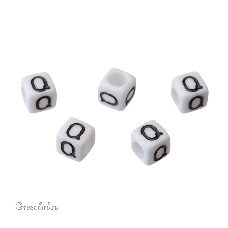 Пластиковые бусины-буквы (латиница) в виде кубика. Цвет: белый; печать рисунка: черный. Размер: 5,8 х 5,8 мм, отверстие: 3,6 мм. Производство: Китай. Цена указана за 1 шт.