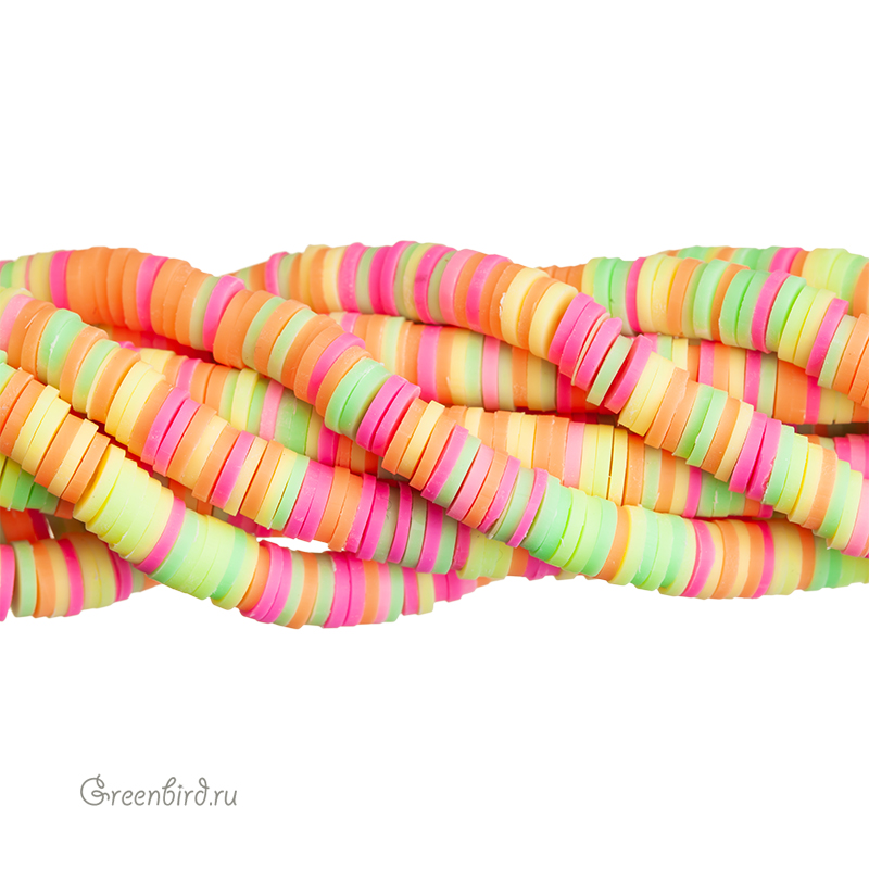 Легкие и гибкие цветные бусины в форме дисков. Материал: резина (каучук). Цвет: цитрус, микс желтого, оранжевого, зеленого и розового. Диаметр: 5,6-6,05 мм, толщина: 0,8-1,1 мм, отверстие примерно 1,8 мм. Размеры могут незначительно отличаться. Производство: Китай. Цена указана за нить 40 см (примерно 350 штук).