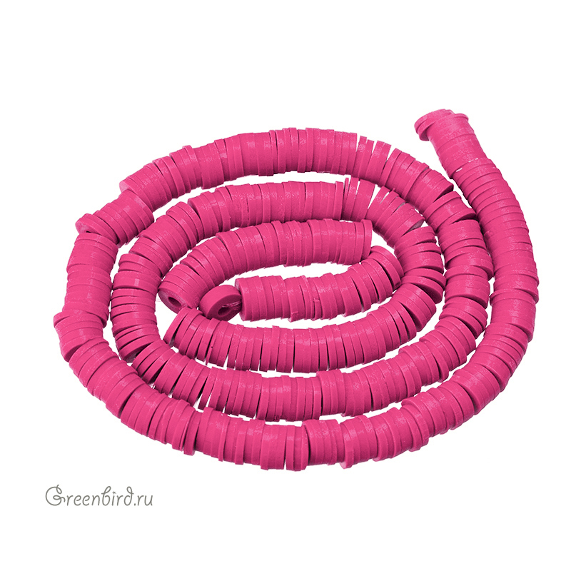 Легкие и гибкие цветные бусины в форме дисков. Материал: резина (каучук). Цвет: неоновый розовый. Диаметр: 5,6-6,05 мм, толщина: 0,8-1,1 мм, отверстие примерно 1,8 мм. Размеры могут незначительно отличаться. Производство: Китай. Цена указана за нить 40 см (примерно 350 штук).