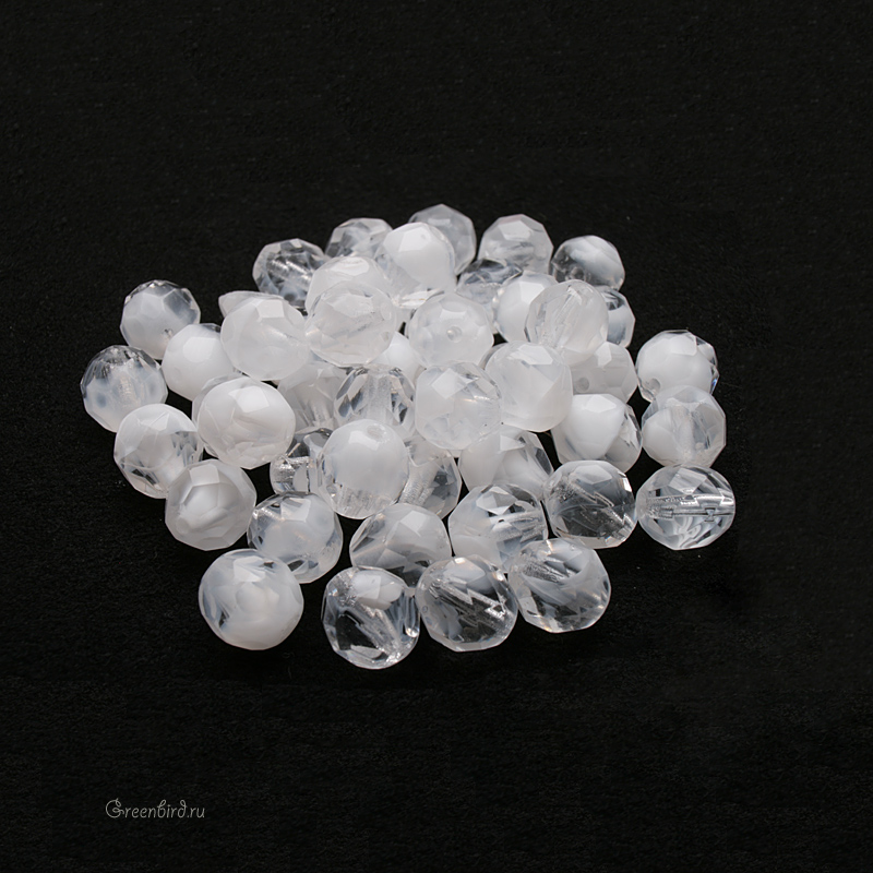 Граненые бусины (стекло). Цвет: #06008 (хрусталь/белый). Размер: 8 мм, отверстие: 1 мм. Производство: Чехия. Цена указана за 50 штук.