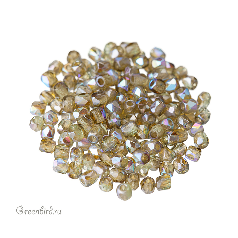 Граненые бусины (стекло). Цвет: #50230/98532 (оливковый, прозрачный / светло-коричневый, частичное покрытие / глянцевый AB, частичное покрытие). Размер: 2 мм, отверстие: 0,7 мм. Производство: Чехия. Обратите внимание: из-за особенностей нанесения покрытия бусины этого цвета незначительно отличаются друг от друга. Цена указана за 1 упаковку (примерно 150 штук).