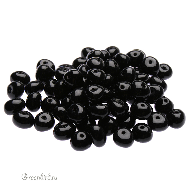 Бусины Nugget штампованные (стекло). Цвет: #23980 (непрозрачный, черный). Размер: 6 х 8 мм, отверстие: 0,7 мм. Производство: Чехия. Цена указана за 25 грамм (примерно 50 штук).