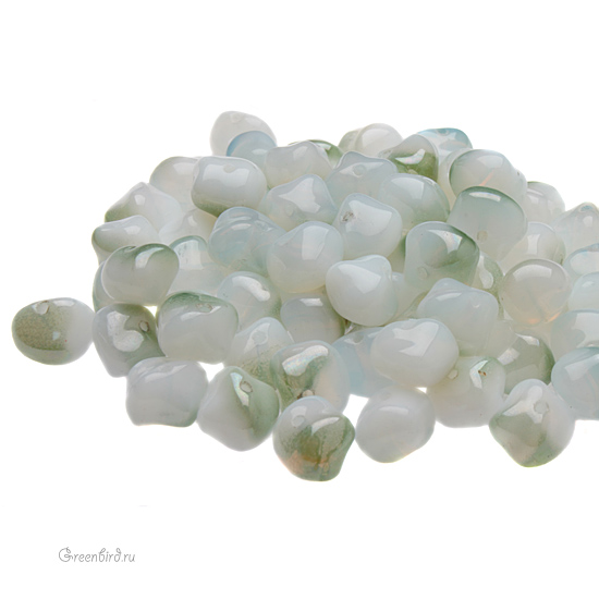 Бусины Nugget штампованные (стекло). Цвет: #LL01000 (непрозрачный глянцевый, белый/зеленый). Размер: 8 х 10 мм. Производство: Чехия. Цена указана за 25 грамм (примерно 32 штуки).
