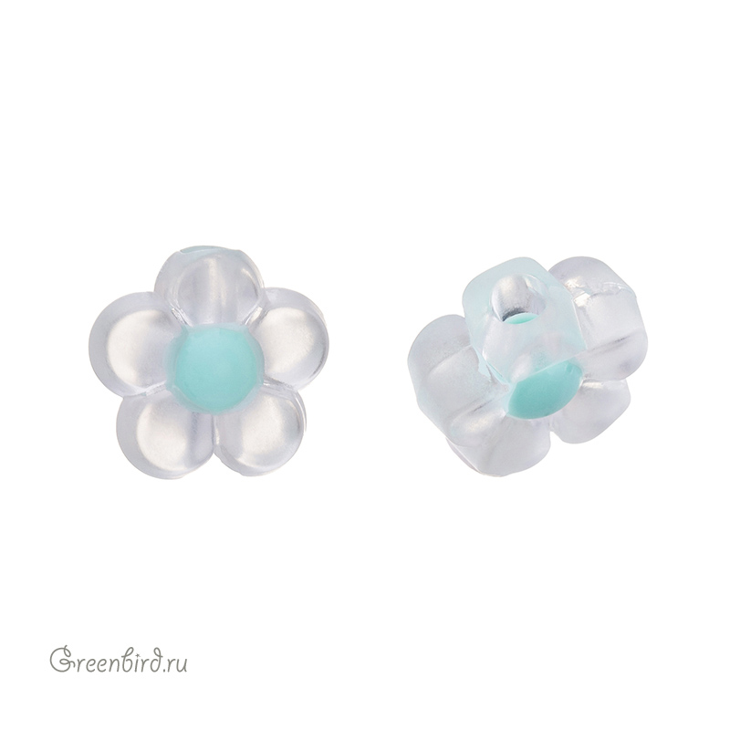 Бусина в виде прозрачного цветочка с цветной серединкой. Материал: пластик. Цвет: зеленый. Размер: 12,5 мм, толщина: 5,7 мм, отверстие: 3 мм. Производство: Китай. Цена указана за 1 шт.