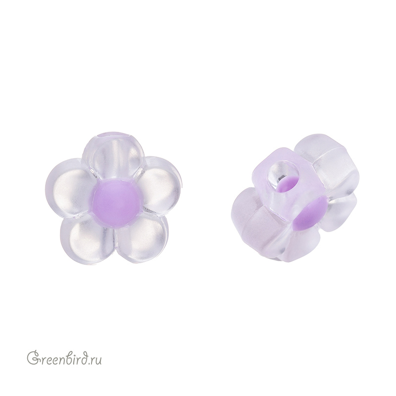 Бусина в виде прозрачного цветочка с цветной серединкой. Материал: пластик. Цвет: фиолетовый. Размер: 12,5 мм, толщина: 5,7 мм, отверстие: 3 мм. Производство: Китай. Цена указана за 1 шт.