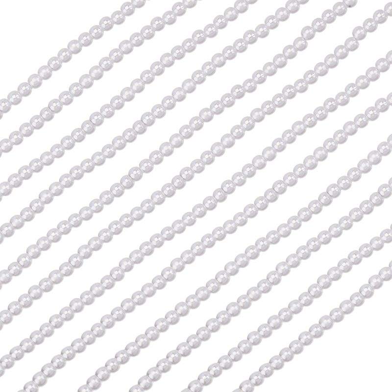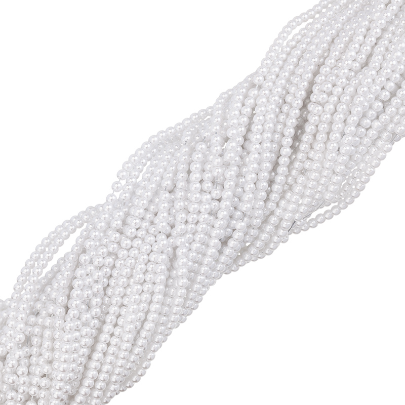 Бусины для рукоделия — жемчуг искусственный, круглой формы. Материал: пластик. Цвет: белый. Размер: примерно 3,5 x 4 мм, диаметр отверстия: 1,5 мм. Производство: Китай. Цена указана за нить (примерно 230 штук).
