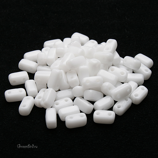 Бусины CzechMates Bricks (стекло). Цвет: #03000 (непрозрачный, белый). Размер: 3 x 6 мм, отверстие: 0,8 мм. Производство: Чехия. Цена указана за 10 грамм (примерно 79 штук).