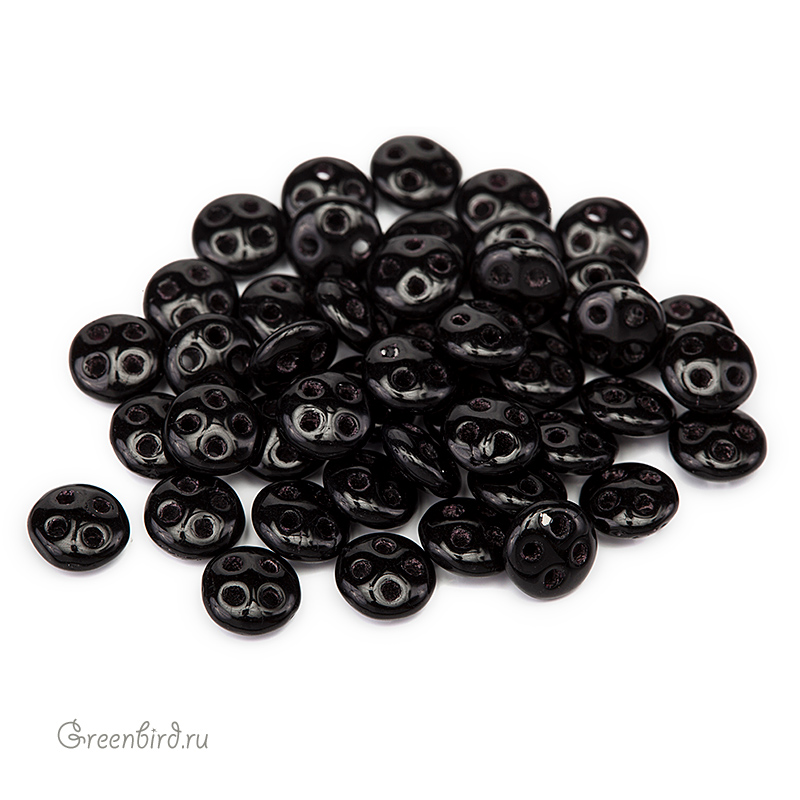 Бусины CzechMates Quadra Lentil (стекло). Цвет: #23980 (непрозрачный, черный). Размер: 6 мм, четыре отверстия: 0,8 мм. Производство: Чехия. Цена указана за 5 грамм (примерно 43 штук).