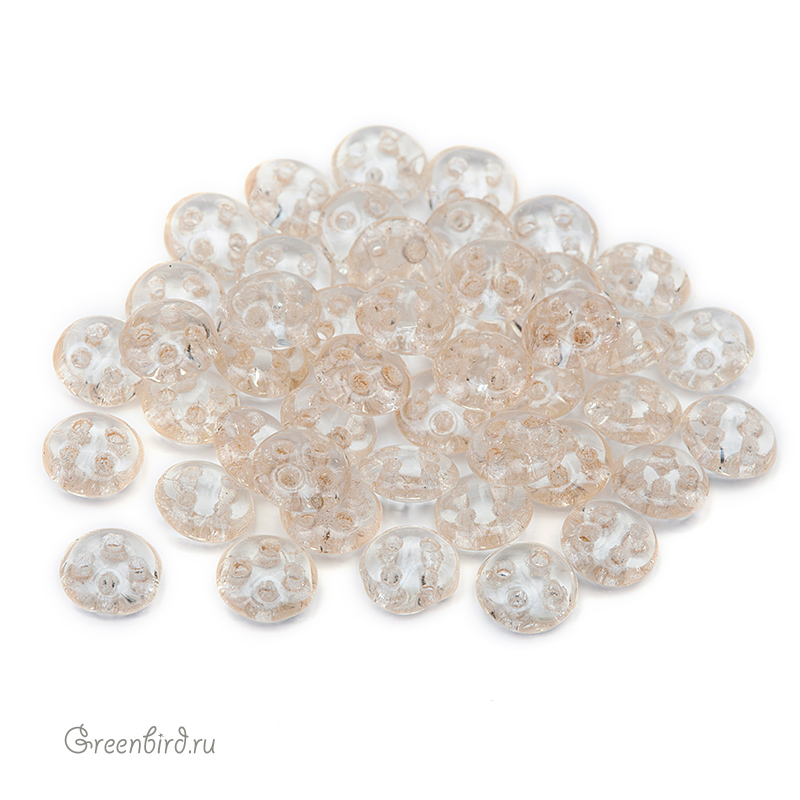 Бусины CzechMates Quadra Lentil (стекло). Цвет: #LC00030 (глянцевый прозрачный, шампанское). Размер: 6 мм, четыре отверстия: 0,8 мм. Производство: Чехия. Цена указана за 5 грамм (примерно 43 штук).