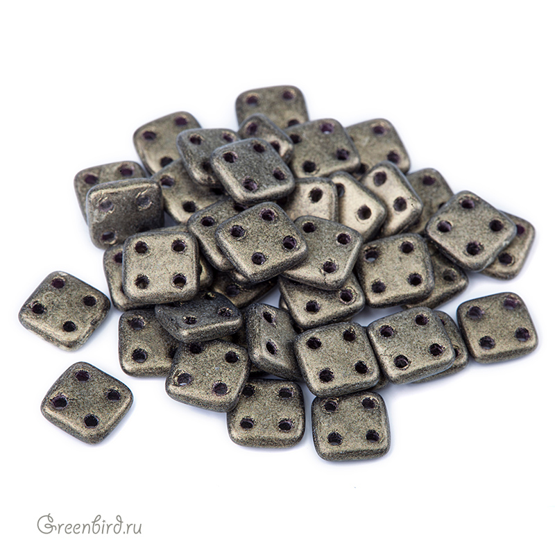 Бусины QuadraTile (стекло). Цвет: #79086MJT (насыщенный металлик, золото). Размер: 6 мм, четыре отверстия: 1 мм. Производство: Чехия. Цена указана за 5 грамм (примерно 38 штук).