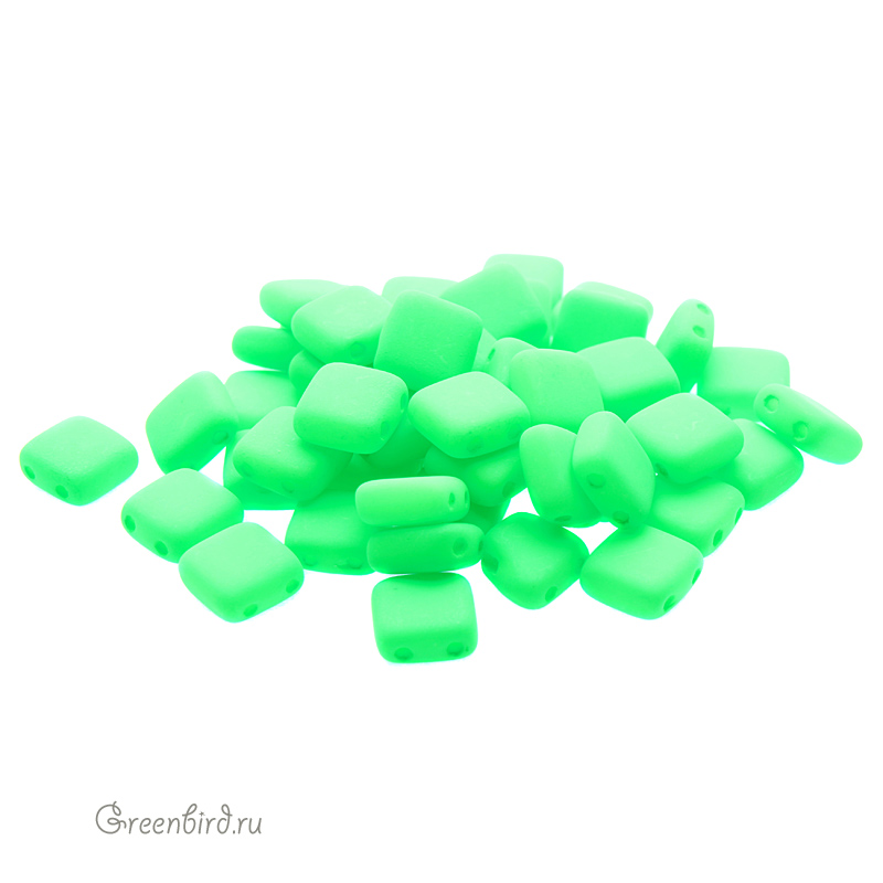 Бусины CzechMates Tile (стекло). Цвет: #25124AL (матовый непрозрачный, зеленый неон). Размер: 6 x 6 мм, отверстие: 0,8 мм. Производство: Чехия. Цена указана за 10 грамм (примерно 45 штук).