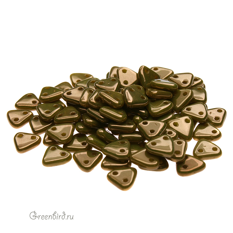 Бусины CzechMates Triangle (стекло). Цвет: #LJ84020 (металлик, шартрез). Размер: 6,27 x 6,25 мм, отверстие: 0,8 мм. Производство: Чехия. Цена указана за 10 грамм (примерно 90 штук).