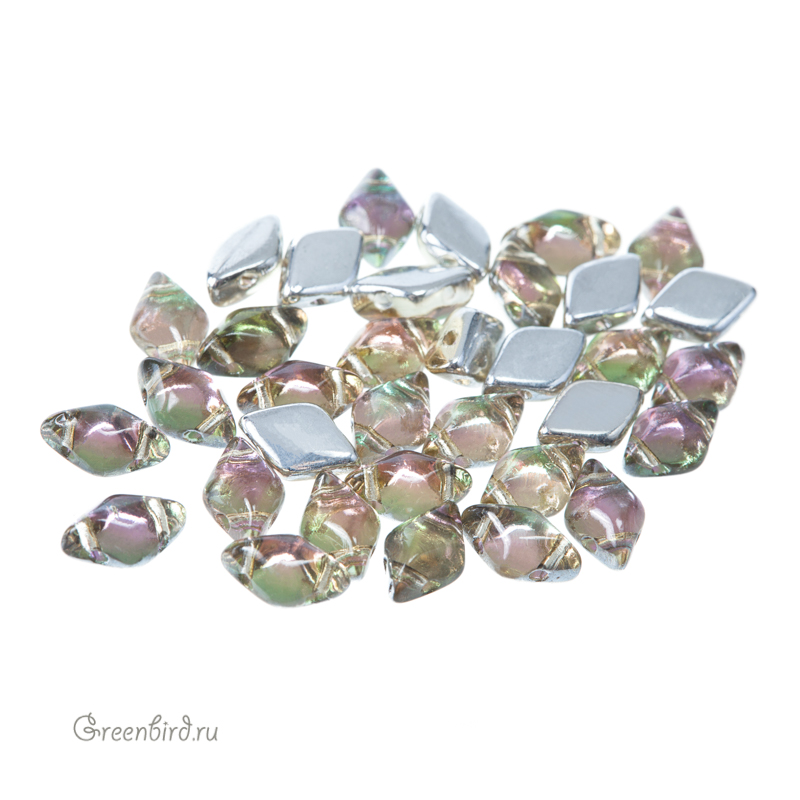 Бусины GemDuo (стекло). Цвет: #10010/26536 (цитрин, прозрачный / розовый с легким радужным эффектом). Размер: 8 х 5 мм, отверстие: 0,8 мм. Производство: Чехия. Цена указана за 5 граммов (примерно 33 штуки).