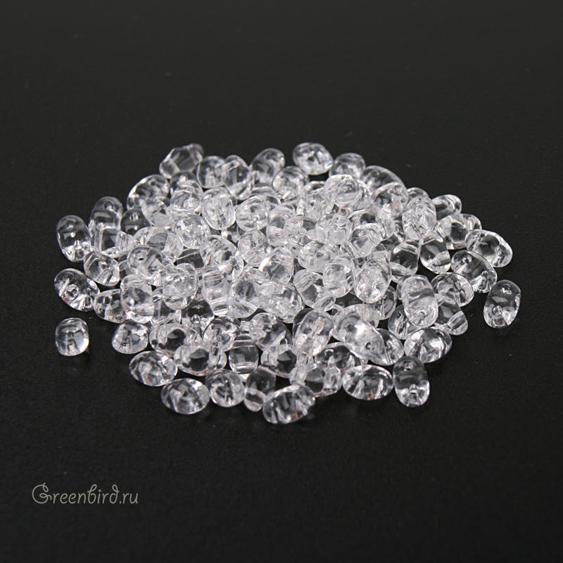 Бусины MiniDuo (стекло). Цвет: #00030 (прозрачный, хрусталь). Размер: 2,5 x 4 мм, отверстие: 0,7 мм. Производство: Чехия. Цена указана за 5 грамм (примерно 110 штук).